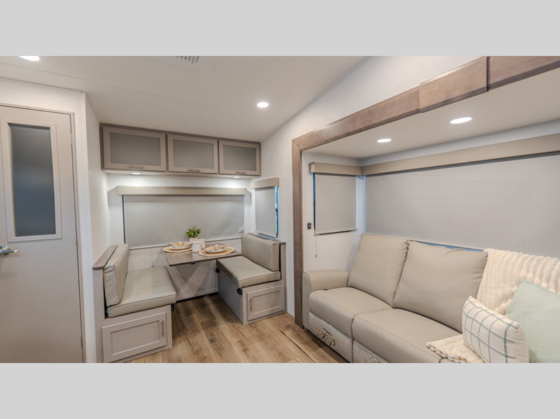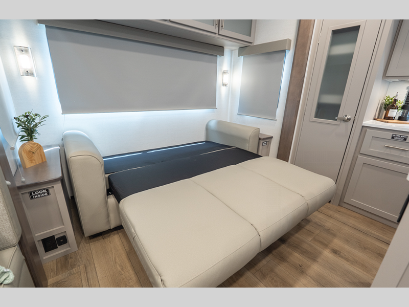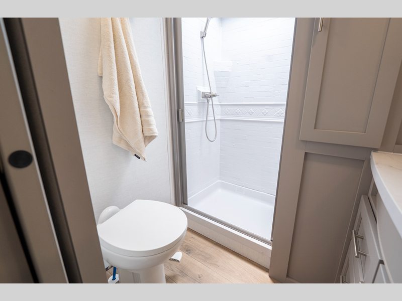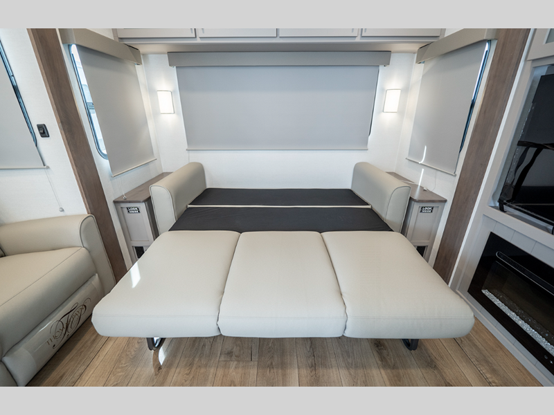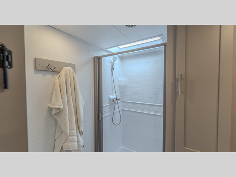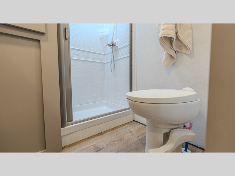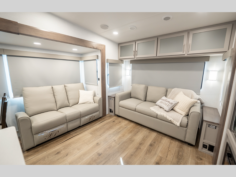 The composite sidewalls are ultra durable and the Benchmark chassis features a super saver upper deck. There are industry leading tank sizes, smart storage solutions, flush floor slide out floors throughout, and no carpet to make cleaning easier than ever.