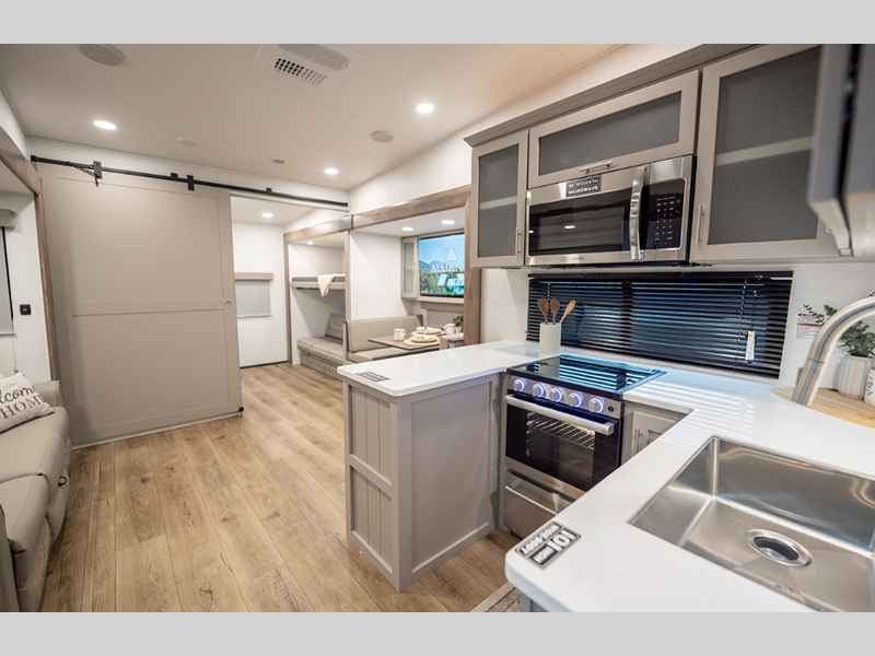 Alliance RV Avenue All-Access fifth wheel 23ML highlights: Rear Kitchen Spacious ... more about Avenue All-Access 23ML