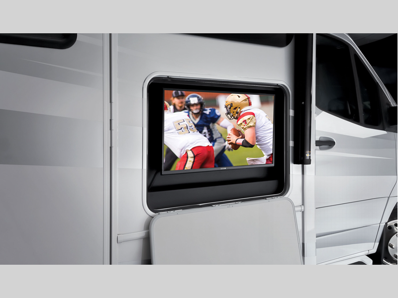 Each model includes an EZ Ryde upgraded suspension system for a smooth drive each time, plus a 10" touch screen and backup camera/side view cameras with a 3-way monitor for easy maneuvering at the campground. The 2" aluminum framed laminated sidewalls and SuperLite composite substrate provide a strong motorhome made to last, and the block foam insulation means you can camp year around. Head inside to find black out roller shades, soft touch self-closing drawer guides, an oxygen-infused shower head, plus a 12V USB charging station to keep your electronics charged and ready to go.