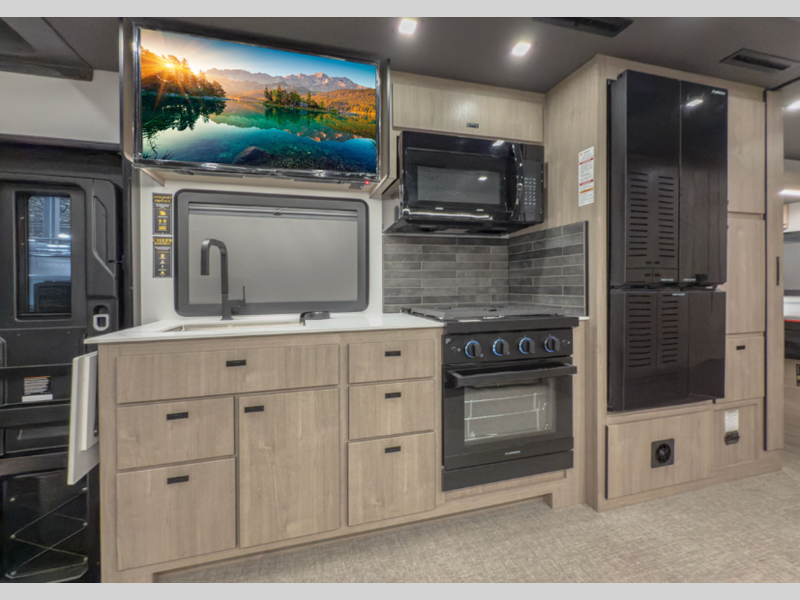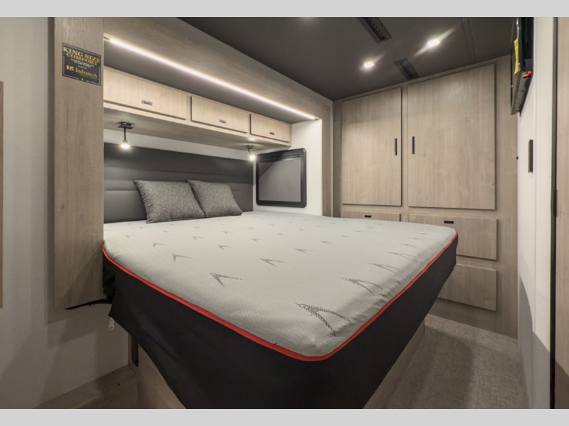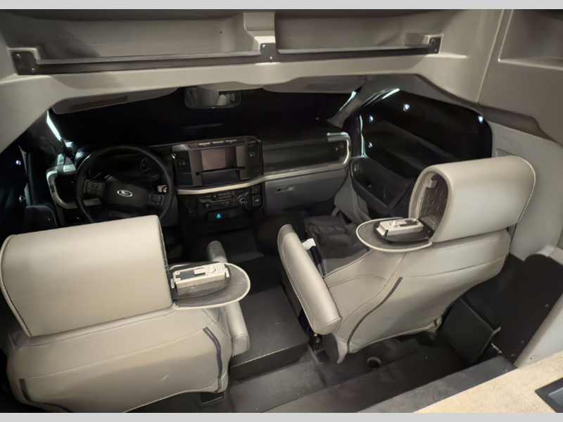 Sleeps 5 Slides 2 Length 33 ft 9 in Ext Width 8 ft 4 in Ext Height 12 ft 3 in Int Height 6 ft 9 in Exterior Color Full Body Paint Choices GVWR 22000 lbs Fresh Water Capacity 79 gals Grey Water Capacity 66 gals Black Water Capacity 45 gals Tire Size LT245/70 Furnace BTU 30000 btu Generator 8.0 kW Onan Fuel Type Diesel Engine 6.7L 4V 8-Cylinder Chassis Ford F-600 4x4 Horsepower 330 hp Fuel Capacity 66.5 gals Wheelbase 245 in Number Of Bunks 1 Available Beds King Torque 950 ft-lb Refrigerator Type 12V Refrigerator Size 10 cu ft Number of Awnings 1 Axle Weight Front 7500 lbs Axle Weight Rear 15500 lbs LP Tank Capacity 20.3 gals. Water Heater Type Tankless AC BTU 30000 btu TV Info Ext. 40" 12V Smart TV Awning Info 13' Washer/Dryer Available Yes Gross Combined Weight 43500 lbs Shower Type Standard Electrical Service 50 amp Solar Wattage 1000 watts Similar Floorplans