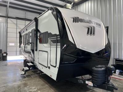 The Grand Design Momentum G-Class toy hauler fifth wheels and toy hauler travel trailers are a lighter series without sacrificing Momentum's ceiling and slide out heights or wide-body platform. Both offer a fuel station with an interior and exterior gauge to keep the fun going wherever you take your toys.