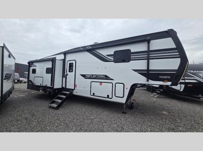 With any Reflection fifth wheel by Grand Design, you will have a solar panel for off-grid camping and a 60 amp charge controller and inverter prep, a Universal All-In-One docking station, unobstructed pass-through storage, and Goodyear Endurance tires. Each is constructed of gel coat exterior sidewalls, residential 5" truss rafters, walk-on roof decking, a fiberglass and radiant foil roof and front cap insulation plus laminated aluminum framed side walls, roof and end walls in slide rooms. Head inside to enjoy residential hardwood cabinet doors, premium Congoleum flooring, a spacious shower with a glass door, and many more comforts!