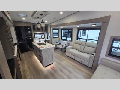 Sleeps 5 Slides 3 Length 34 ft 9 in Ext Width 8 ft Ext Height 12 ft 6 in Hitch Weight 2200 lbs GVWR 13995 lbs Dry Weight 11100 lbs Fresh Water Capacity 74 gals Grey Water Capacity 94 gals Black Water Capacity 47 gals Tire Size ST235/80R16RLE Furnace BTU 35000 btu Available Beds Queen Refrigerator Type 12V Refrigerator Size 16 cu ft Cooktop Burners 3 Shower Size 30" x 48" Number of Awnings 2 LP Tank Capacity 30 lbs Water Heater Type On Demand Tankless AC BTU 15000 btu TV Info LR 40" TV Awning Info 16' & 10'6" One-Touch Electric LED Axle Count 2 Washer/Dryer Available Yes Number of LP Tanks 2 Shower Type Standard Electrical Service 50 amp Similar Fifth Wheel Floorplans