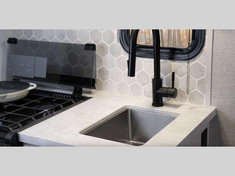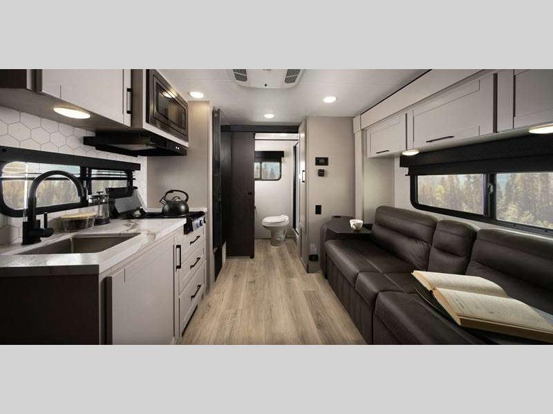 Additional stand-out features include a Rock Solid jacks helps you achieve a level trailer with less effort and time. You algo have an on demand water heater, and a Magnum Truss roof system, tested to withstand 4,500 lbs! Inside, you'll be met with residential-style seamless countertops throughout, spacious handcrafted, hardwood door/drawer fronts, and residential vinyl flooring throughout that will be easy to keep clean.