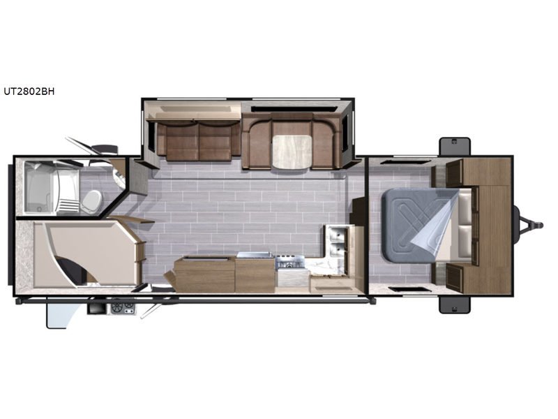 If you are looking for an entry along the curbside into the main living area and an entrance into the rear bathroom from the roadside, then take a look at this Open Range Ultra Lite travel trailer UT2802BH. You will find these features as well as many more such as a set of double size bunk beds and a large slide out.